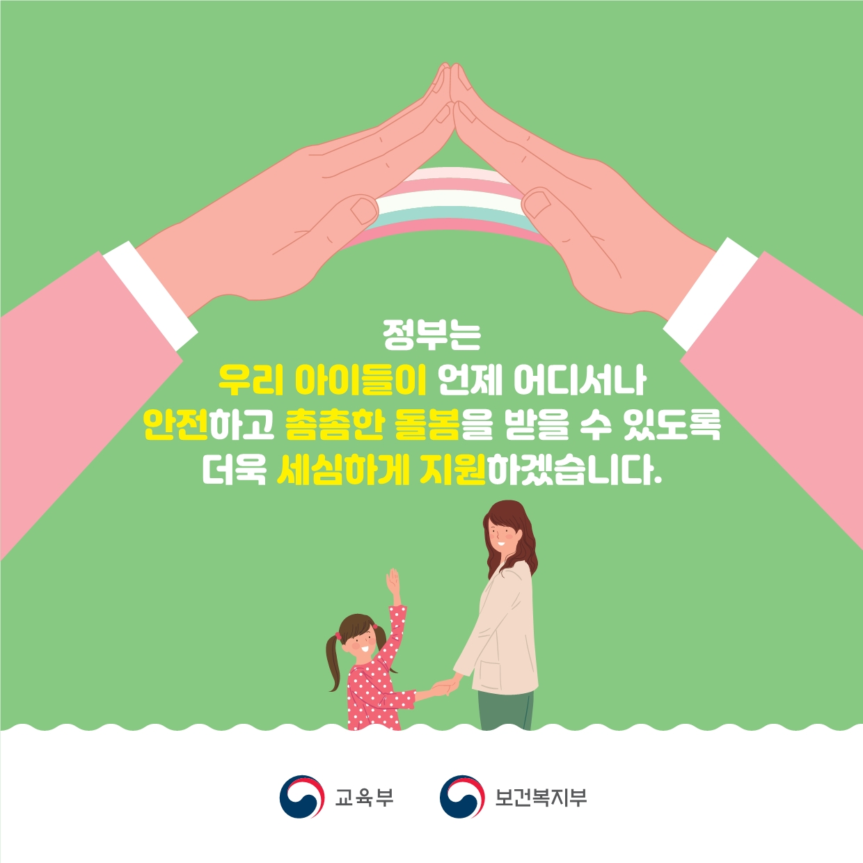 정부는 우리아이들이 언제 어디서나 안전하고 촘촘한 돌봄을
