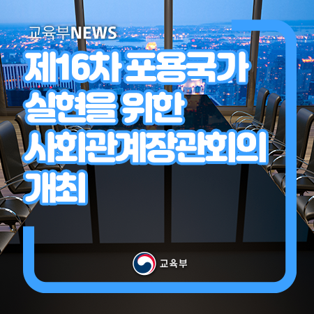 교육부(부총리 겸 교육부장관 유은혜)는 9월 8일(수) 정부서울청사에서 제16차 사회관계장관회의를 개최한다.