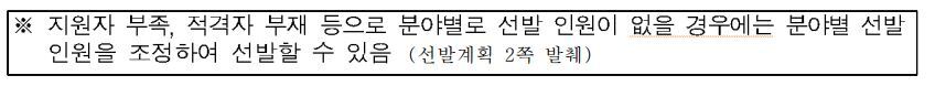 [1] 기 공고된 바에 따라 분야별 선발 인원을 조정하여 선발할 수 있습니다.