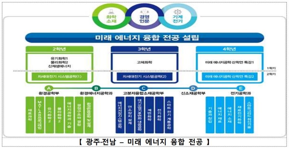 광주·전남에서는 전남대를 중심으로 ‘미래 에너지 융합 전공’을 개설하고, 이를 조선대, 동신대 등 지역 내 6개 대학과 공유하여 2020년 171명이 수료하였다.