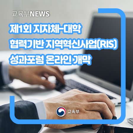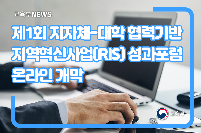 교육부(부총리 겸 교육부장관 유은혜)와 한국연구재단(이사장 직무대행 김성수)이 주최하고 ‘지자체-대학 협력기반 혁신지원사업(RIS*) 총괄운영센터협의회’(회장 홍진태)가 주관하는 ‘지자체-대학 협력기반 지역혁신사업 제1회 성과포럼’이 9월 13일(월), 온라인(유튜브 송출)으로 개최된다.