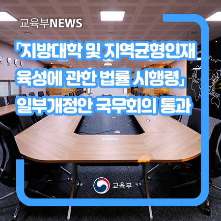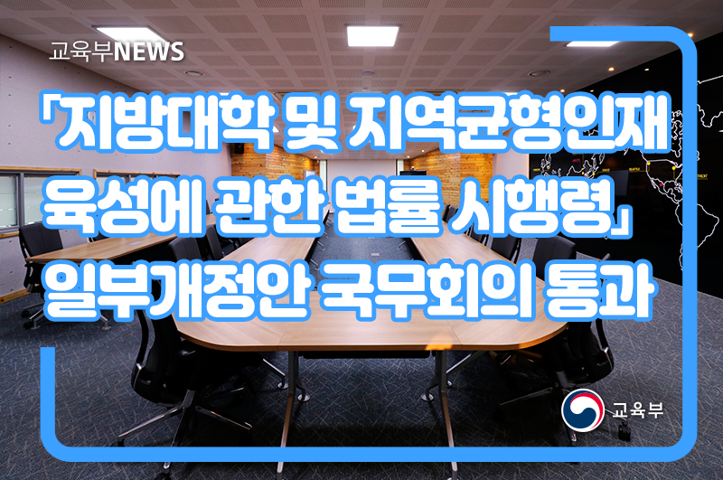 교육부(부총리 겸 교육부장관 유은혜)는 9월 14일(화), 국무회의에서 「지방대학 및 지역균형인재 육성에 관한 법률 시행령」일부개정안을 심의·의결하였다고 밝혔다.