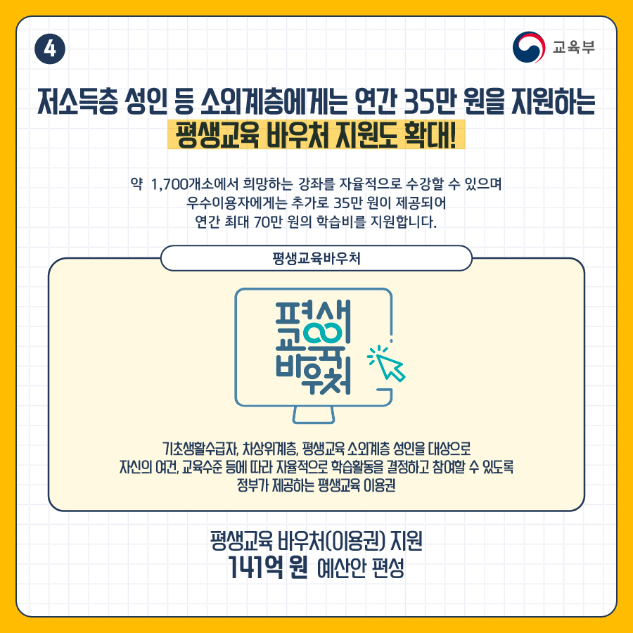 평생교육 바우처(이용권)지원 141억 원 예산안 편성 |