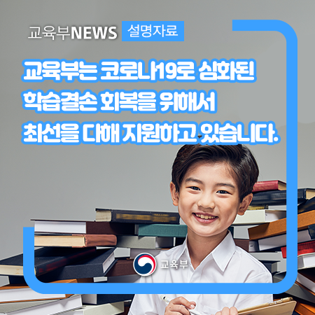 교육부는 코로나19로 심화된 학습결손 회복을 위해서 최선을 다해 지원하고 있습니다. 본문