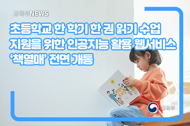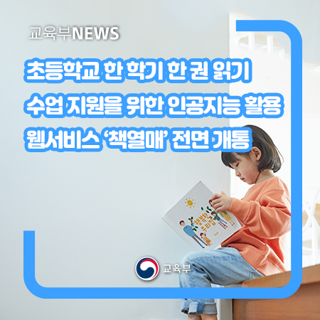 교육부(부총리 겸 교육부장관 유은혜)와 한국교육과정평가원(원장 강태중)은 학생의 독서 활동 이력을 인공지능(AI)으로 분석하여 학생 맞춤형 도서를 추천해주는 웹서비스 ‘책열매’(책으로 열리는 매일)를 9월 29일(수)부터 전면 개통한다.