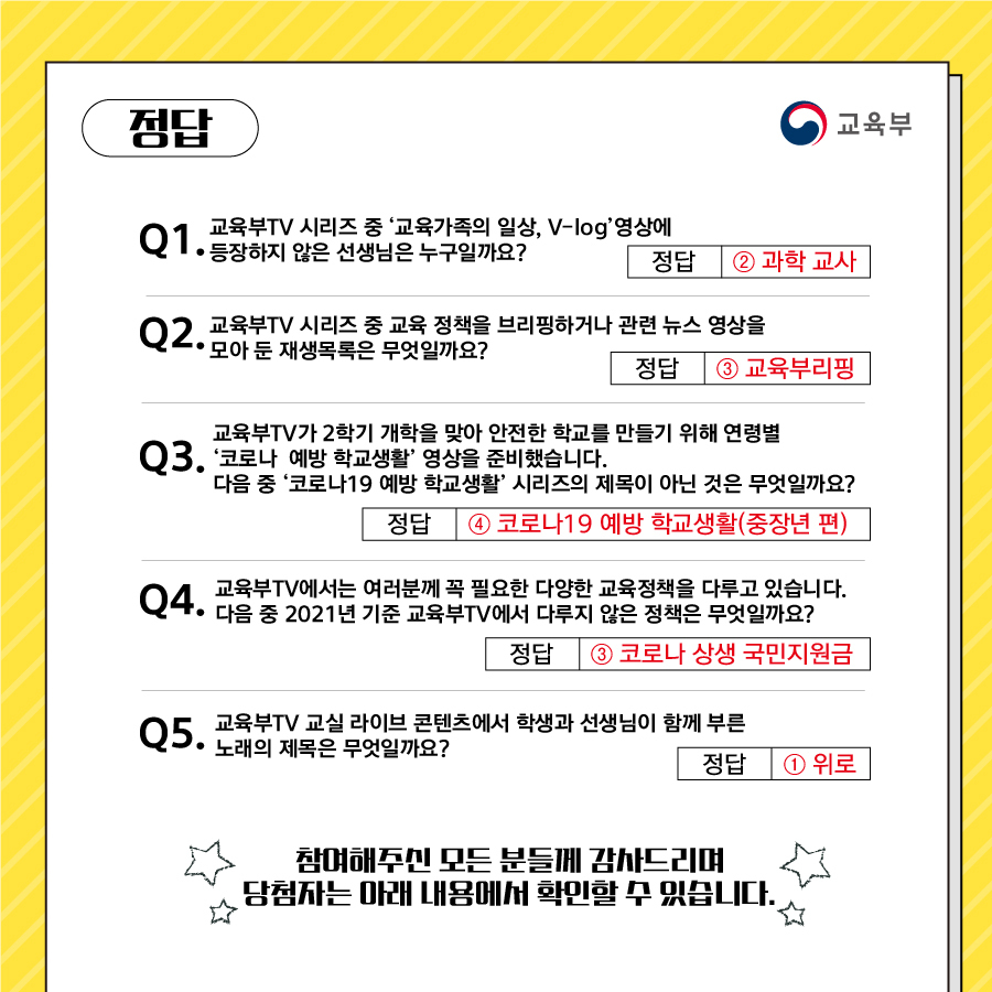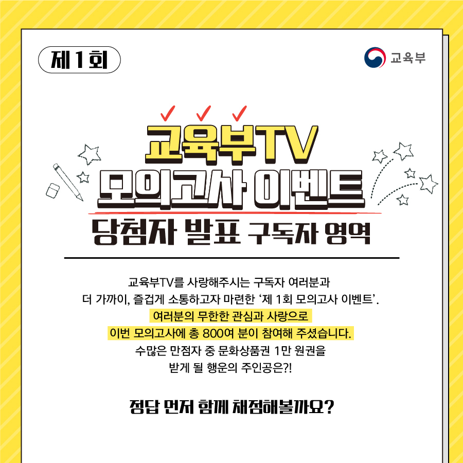 제 1회 교육부TV 모의고사 이벤트 당첨자 발표 🎉 본문