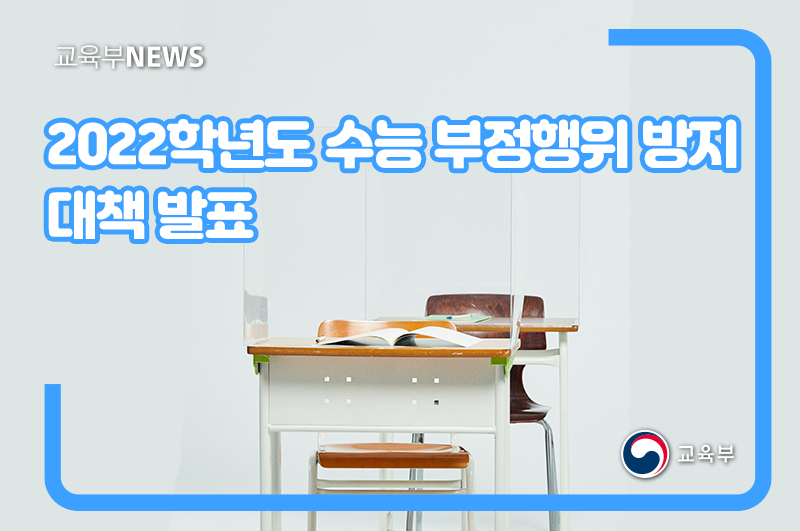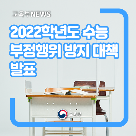 교육부(부총리 겸 교육부장관 유은혜)는 올해 대학수학능력시험(이하 수능)이 공정하고 안정적으로 시행될 수 있도록 2022학년도 수능 부정행위 방지 대책을 발표하고 각 시도로 안내한다.