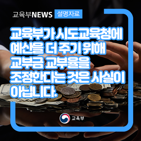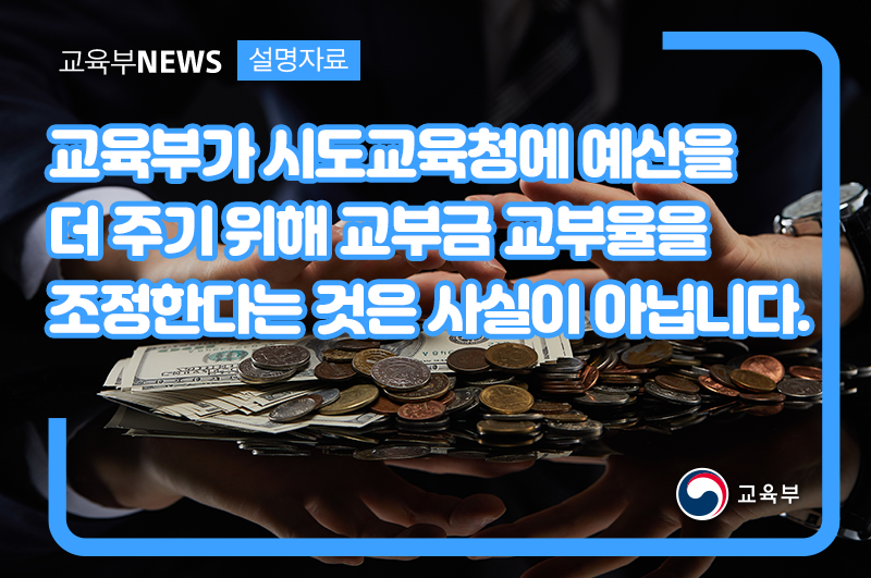 교육부가 시도교육청에 예산을 더 주기 위해 교부금 교부율을 조정한다는 것은 사실이 아닙니다. 본문