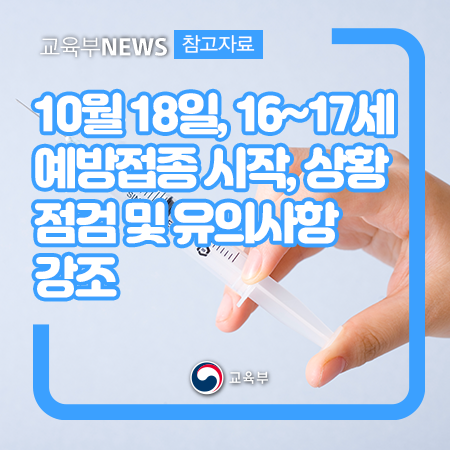 10월 18일, 16∼17세 예방접종 시작, 상황 점검 및 유의사항 강조 본문