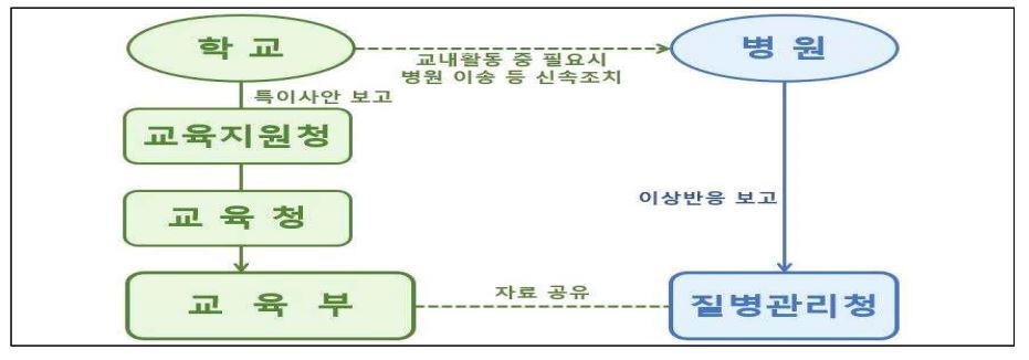 10월 13일(수) 교육부과 질병관리청 간 협의사항을 공유하면서 소아청소년 백신접종 협력 및 지원체계 유지를 강조하고, 학교를 통한 학생·학부모 대상 접종 전·후 유의사항 재 안내 등을 특별히 강조 하는 등 시·도교육청별로 안전 접종 지원에 총력을 기울이도록 당부하였다.