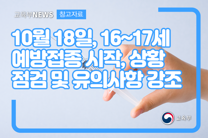 10월 18일, 16∼17세 예방접종 시작, 상황 점검 및 유의사항 강조 본문