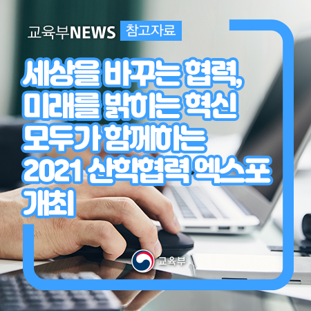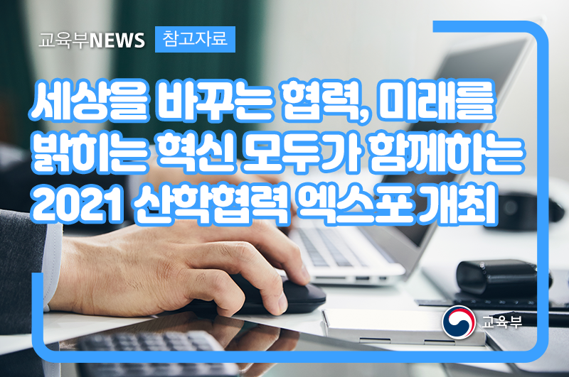 교육부(부총리 겸 교육부장관 유은혜)와 한국연구재단(이사장 이광복)은 「2021 산학협력 엑스포」를 온라인(10.18.(월)~10.24.(일))*과 오프라인(10.20.(수)~10.22.(금)/수원컨벤션센터)으로 개최한다.