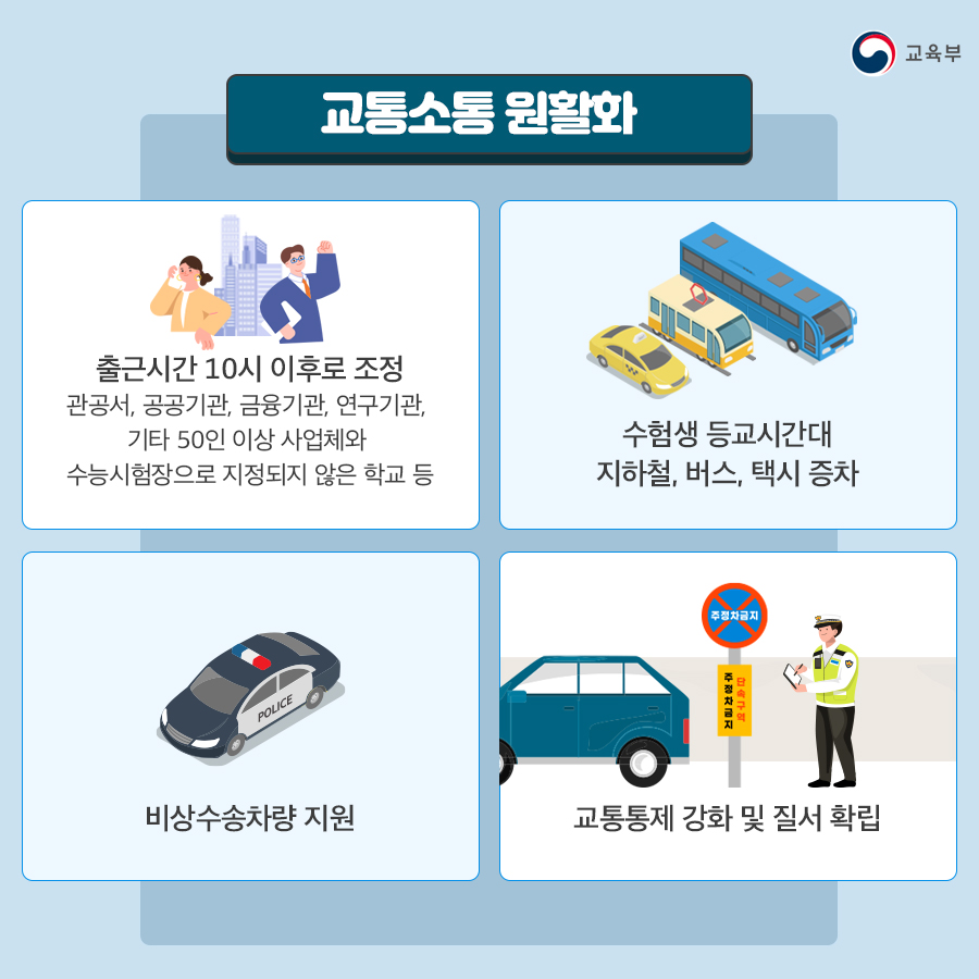 수험생 등교시간대 지하철, 버스, 택시 증차