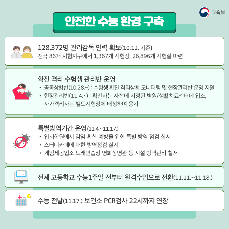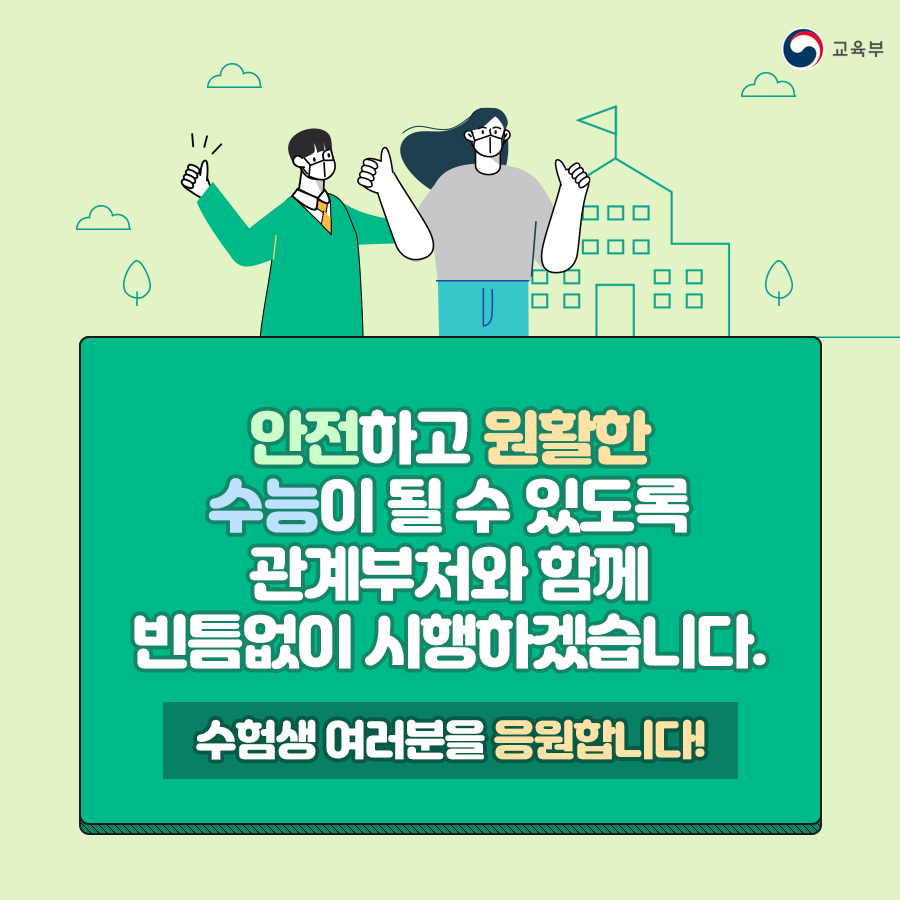 안전하고 원활한 수능이 될 수 있도록 관계부처와 함께 빈틈없이 시행하겠습니다.
