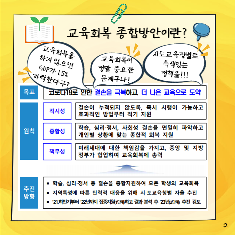 Q2. 교육부에서 교육회복을 위한 종합방안을 제시했습니다.