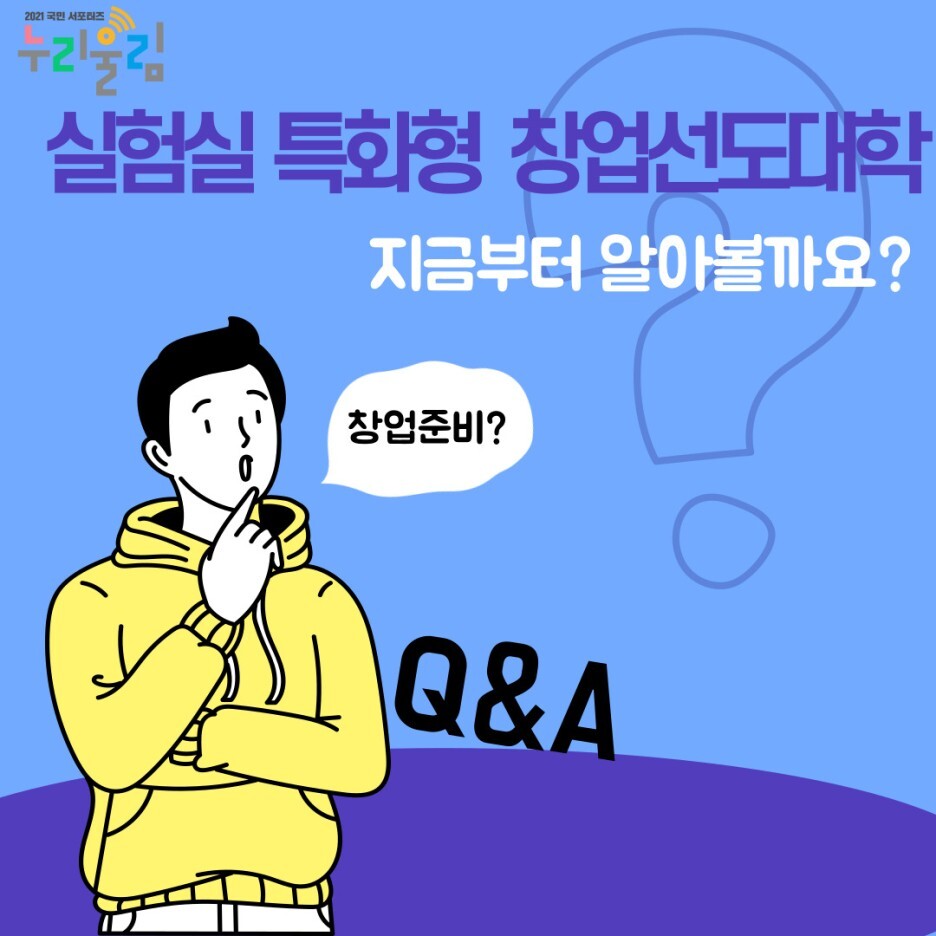 교육부는 과학기술정보통신부, 중소벤처기업부와 함께 2021년에 총 10개의 대학을 ‘신규 실험실 특화형 창업선도대학’으로 선정해 청년 창업 지원에 나섰는데요. 실험실 특화형 창업선도대학, 이 단어가 잘 와닿지 않는다고요? 지금부터 저와 함께 자세히 알아봐요!