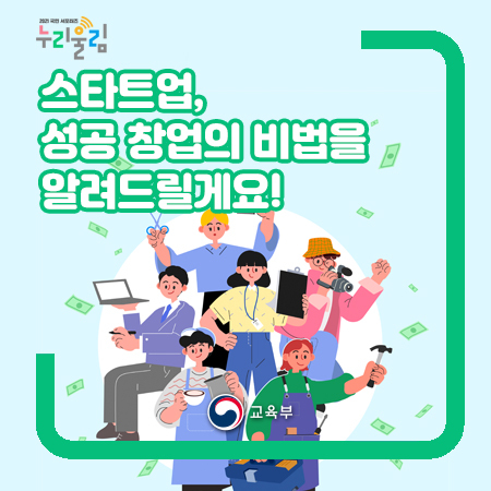 평생 직장이라는 말이 희석된 지금, 누구나 한 번쯤 창업을 꿈꿔 봤을 텐데요. 창업을 위해서 톡톡 튀는 아이디어만큼 체계적인 교육과 훈련, 그리고 탄탄한 지원이 필요합니다. 사업을 함께 알아보며 미래 창업가들을 위해 대학들은 많은 노력을 기울이고 있는 걸 확인해 볼 수 있었는데요. 교육부에서는 실험실 특화형 창업선도대학 사업 이외에도 선도 국가로 나아가고, 산업 변화에 발 빠르게 대응하는 미래 인재를 양성하기 위한 방책으로 기업 취업뿐 아니라 창업 준비자들을 위한 정책을 마련하고, 대학을 적극 지원한다고 합니다. 여러분 중에 미래 CEO를 꿈꾸는 분이 있다면, 교육부의 다양한 창업 지원 사업에 관심을 가져보시는 것은 어떨까요? 모두들 안심하고 창업에 도전해보세요!