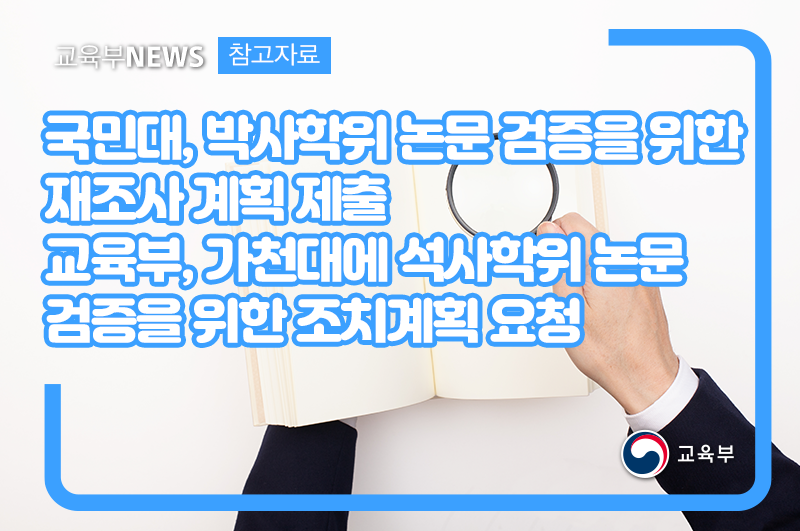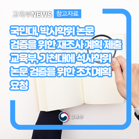 국민대, 박사학위 논문 검증을 위한 재조사 계획 제출 교육부, 가천대에 석사학위 논문 검증을 위한 조치계획 요청 본문
