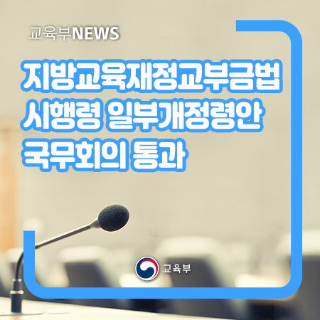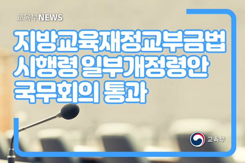 교육부(부총리 겸 교육부장관 유은혜)는 11월 9일(화), 국무회의에서 「지방교육재정교부금법 시행령」 일부개정령안을 심의·의결하였다고 밝혔다.