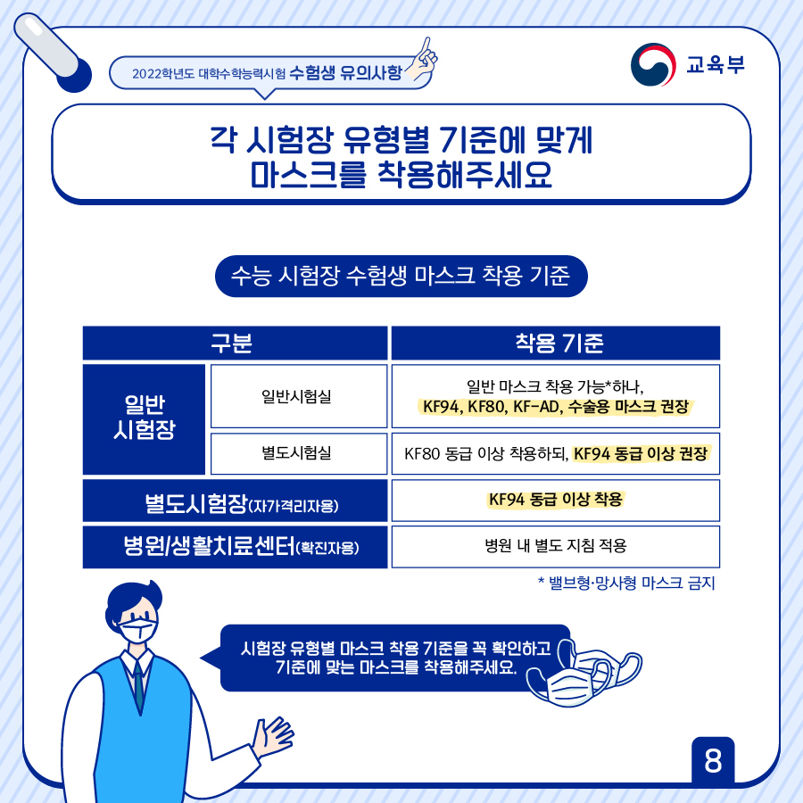 수능 시험장 수험생 마스크 착용 기준 | ||