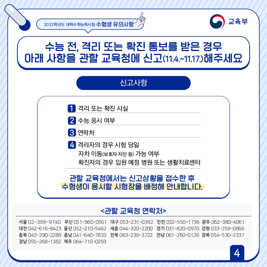 아래 사항을 관할 교육청에 신고(11.4.~11.17.)해주세요