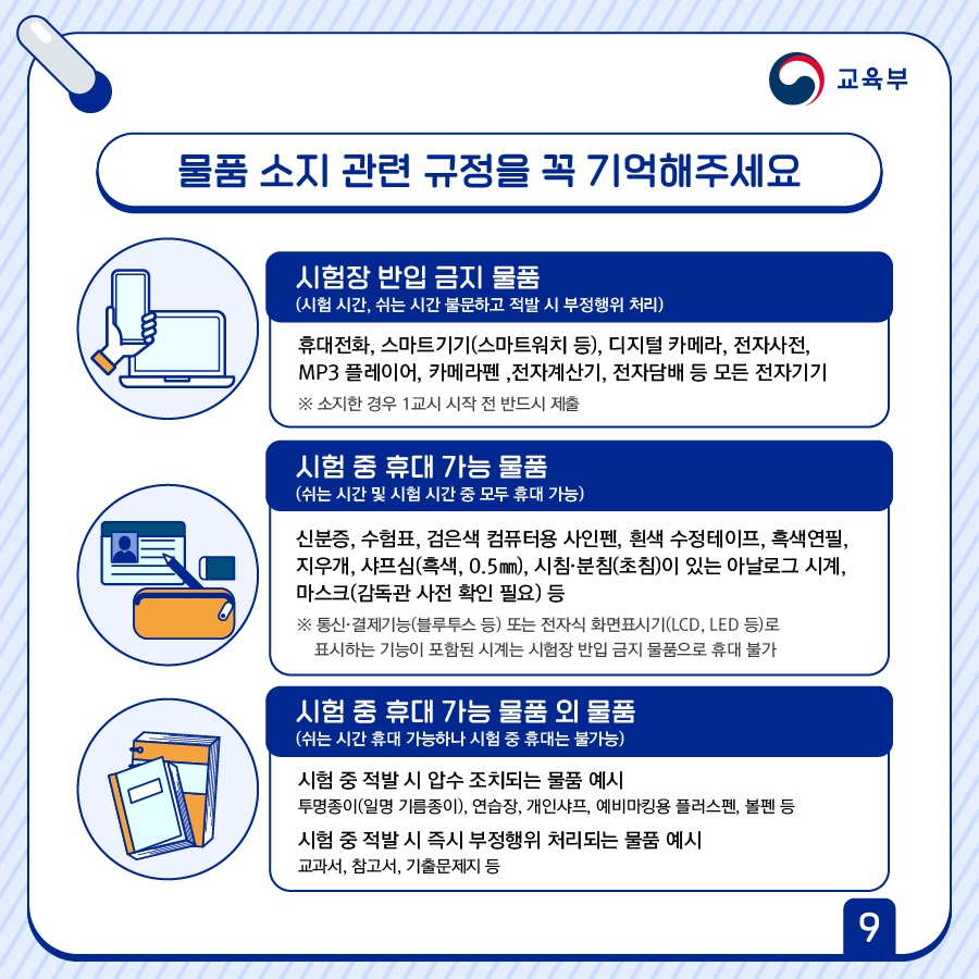 ※ 소지한 경우 1교시 시작 전 반드시 제출
