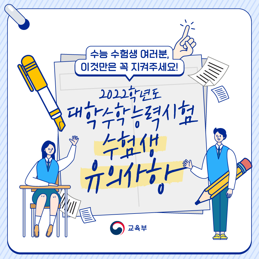 "수험생 여러분, 이것만은 꼭 지켜주세요" 2022학년도 대학수학능력시험 유의사항 본문