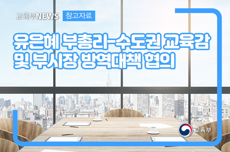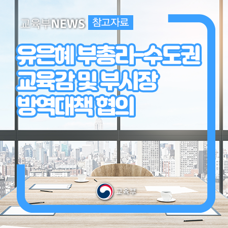 교육부(부총리 겸 교육부장관 유은혜)는 수도권 교육감 및 부시장 등과 함께 일주일 앞으로 다가온 수능시험과 11월 22일(월)부터 시행 예정인 수도권 지역의 전면등교 준비상황을 점검하고 학교 안팎의 방역 조치방안을 논의하기 위해 11월 10일(수), 정부서울청사에서 방역 대책 회의(영상)를 개최하였다.