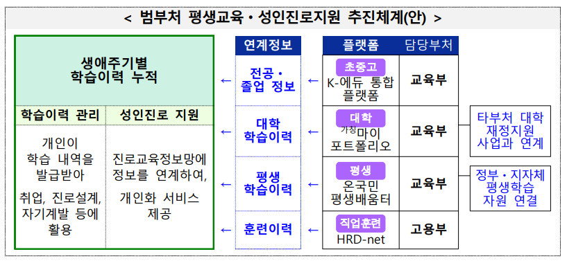 또한, 데이터에 기반한 인재정책이 수립·추진되도록 초중등부터 직업훈련까지 개인의 학습이력을 체계적으로 관리하고,