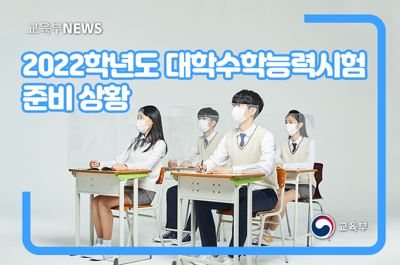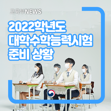 교육부(부총리 겸 교육부장관 유은혜)는 수능을 하루 앞둔 11월 17일(수), 2022학년도 대학수학능력시험*(이하 수능) 준비상황을 공개하였다.