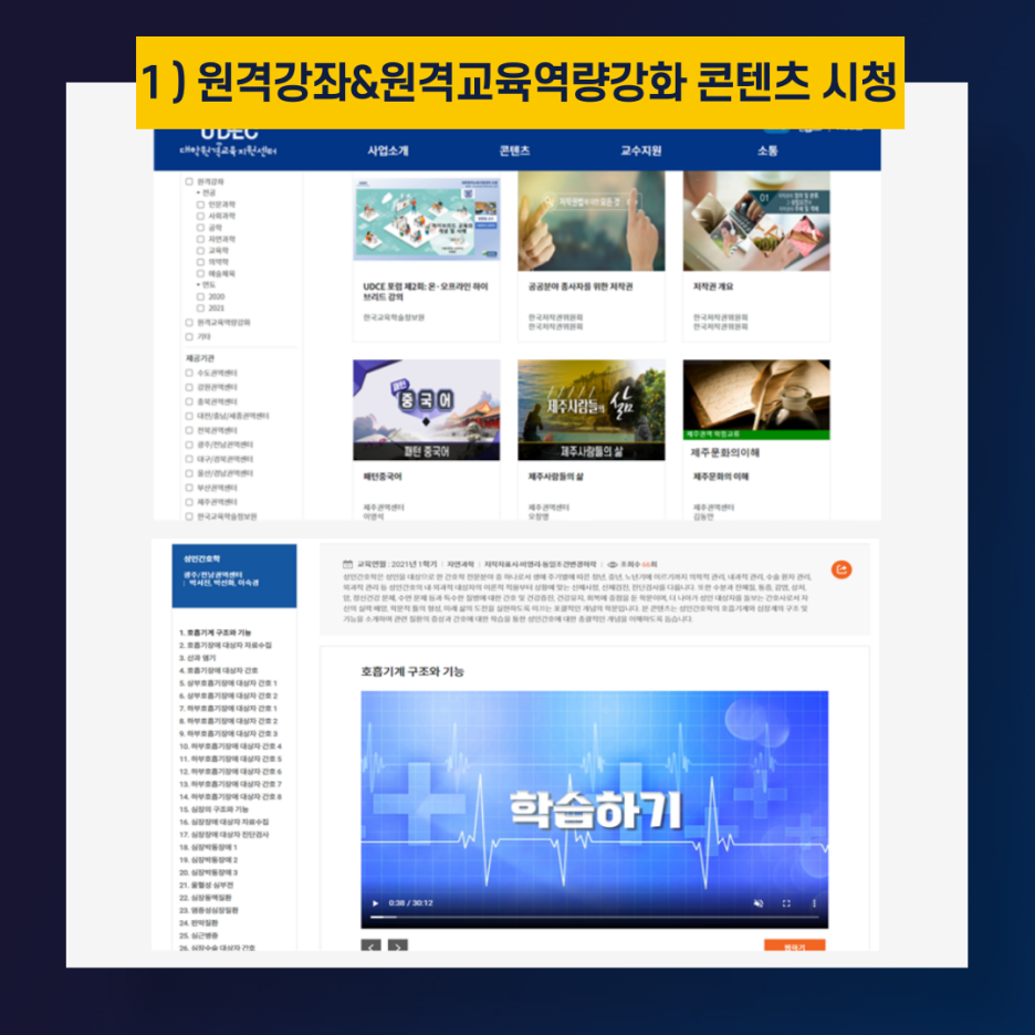 1) 원격 강좌 및 원격교육역량강화 콘텐츠를 시청할 수 있어요.