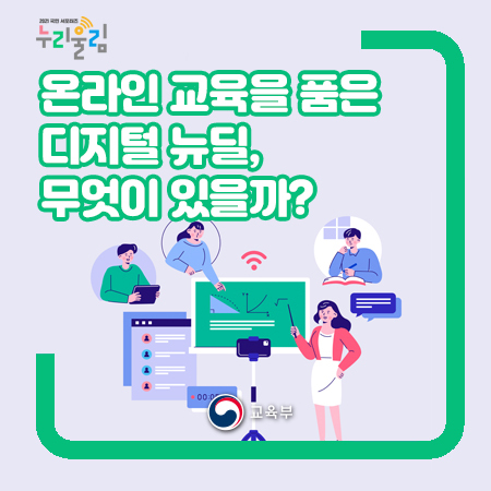 오늘은 교육 분야의 다양한 디지털 뉴딜 정책에 대해 함께 알아보았는데요. 디지털 뉴딜을 통해 학교 현장에 디지털 인프라가 구축되고, 초등학생부터 선생님까지 디지털 역량을 키워 오프라인뿐 아니라 온라인에서도 쉽게 수업할 수 있는 날이 다가오길 기대합니다!