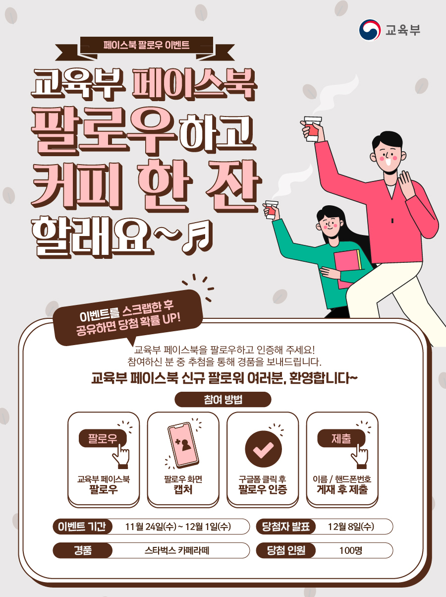 교육부 페이스북 팔로우하고 커피 한 잔 할래요~ 본문