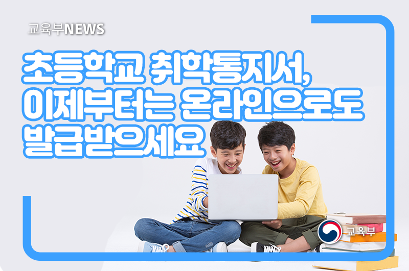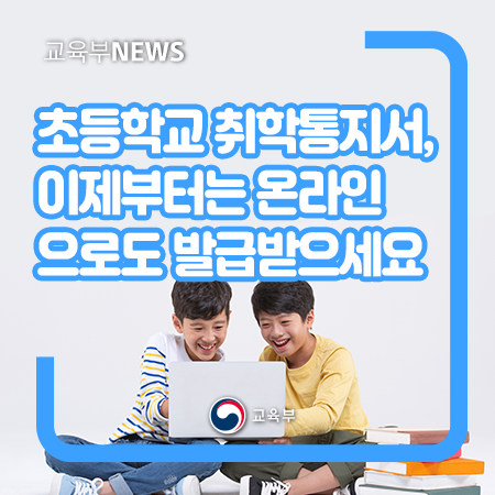 교육부(부총리 겸 교육부장관 유은혜)와 행정안전부(행정안전부장관 전해철)는 2022학년도 초등학교 취학통지서 온라인 열람·발급 서비스를 12월 3일(금)부터 개시한다.