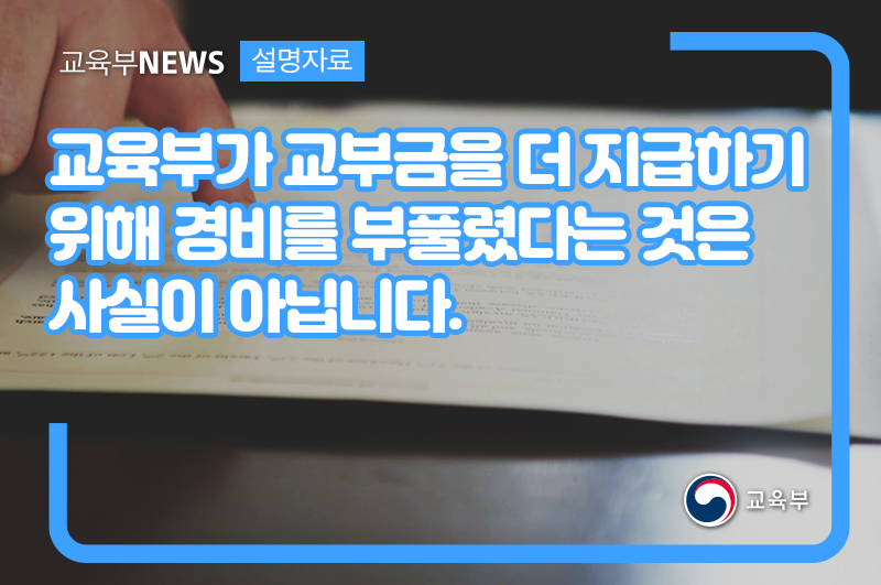 교육부가 교부금을 더 지급하기 위해 경비를 부풀렸다는 것은 사실이 아닙니다. 본문