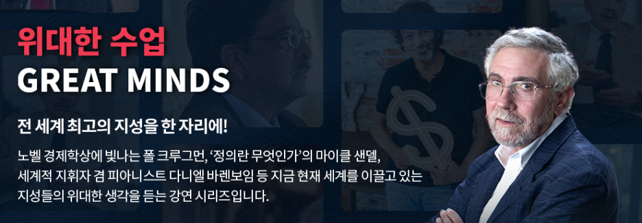 오늘은 그중에서도 석학들의 강연 시리즈인 ‘위대한 수업’에 대해 자세히 알아보고자 하는데요. 그럼 함께 가볼까요?