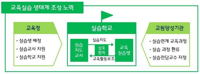 실습생이 학교의 부담이 되는 것이 아니라, 교육공동체의 일원으로 교육활동에 기여할 수 있도록 역할을 부여하고, 이를 교육청과 양성기관에서 적극적으로 협업하여, 교육실습 생태계가 조성될 수 있도록 지원할 계획이다.