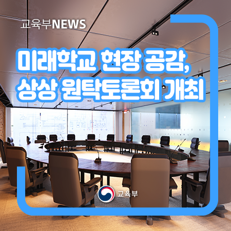 교육부(부총리 겸 교육부장관 유은혜)는 미래학교의 추진과정을 경험하는 그린스마트미래학교 현장공감 상상(相尙)* 원탁토론회를 12월 13일(월), 솔빛초등학교(세종특별자치시 반곡동 소재)에서 개최한다.