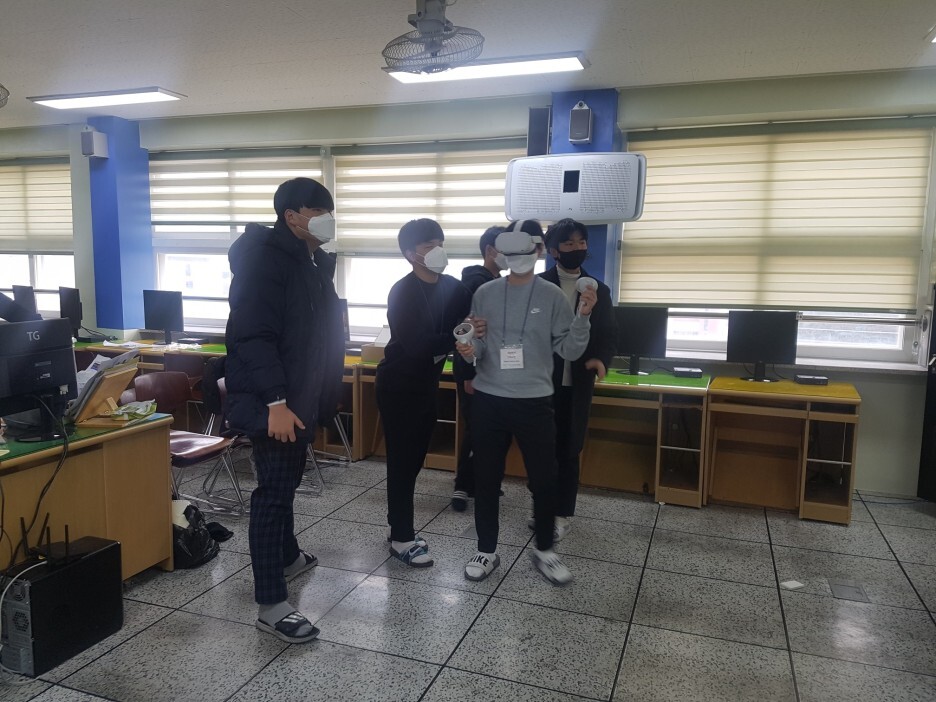 밀양의 세종중학교는 학교공간혁신 프로젝트 수업을 진행할 때, 건축에 대한 이해를 높이기 위해 EBS 실감형 콘텐츠를 활용하여 건축을 직접 체험해보았답니다. VR을 착용하고 건축이 어떻게 이루어지는지 직접 체험해보면서 공간혁신에 대한 이해를 높이고 학생들이 직접 공간혁신에 참여할 수 있는 계기를 마련하였답니다.