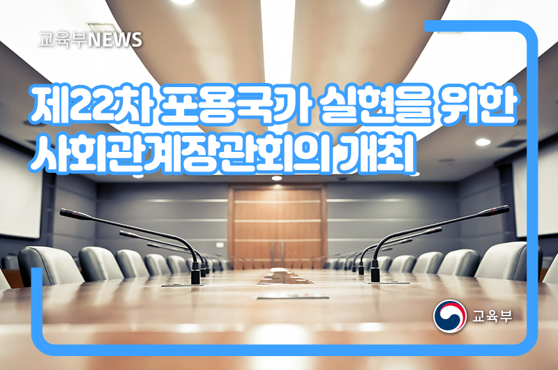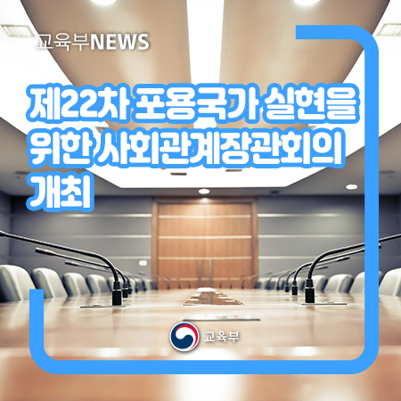 교육부(부총리 겸 교육부장관 유은혜)는 12월 15일(수) 정부서울청사에서 제22차 사회관계장관회의를 개최한다.