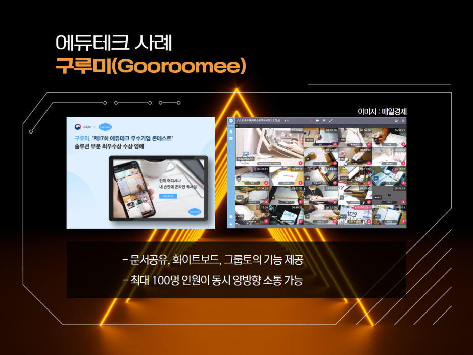 다음 소개할 플랫폼은 바로 온택트 플랫폼인 구루미입니다. 이 플랫폼은 ‘제17회 에듀테크 우수기업 콘테스트’에서 솔루션 부문 최우수상을 수상했을 정도로 최근 에듀테크 분야에서 교육환경 개선과 교육 효과성 증대에 기여한 점을 인정받았다고 할 수 있을 것 같습니다.