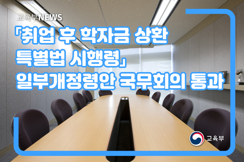 교육부(부총리 겸 교육부장관 유은혜)는 12월 28일(화), 국무회의에서 「취업 후 학자금 상환 특별법 시행령」일부개정령안이 심의·의결되었다고 밝혔다.