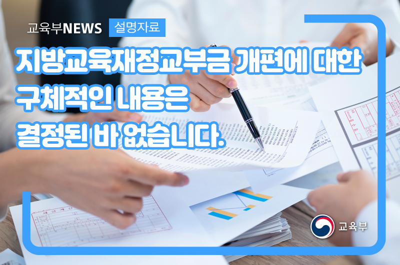 이와 관련하여, 현재 향후 지방교육재정 제도 개편의 구체적인 내용에 대해 관계 부처 간 합의되거나 결정된 사항은 없음을 알려드립니다.