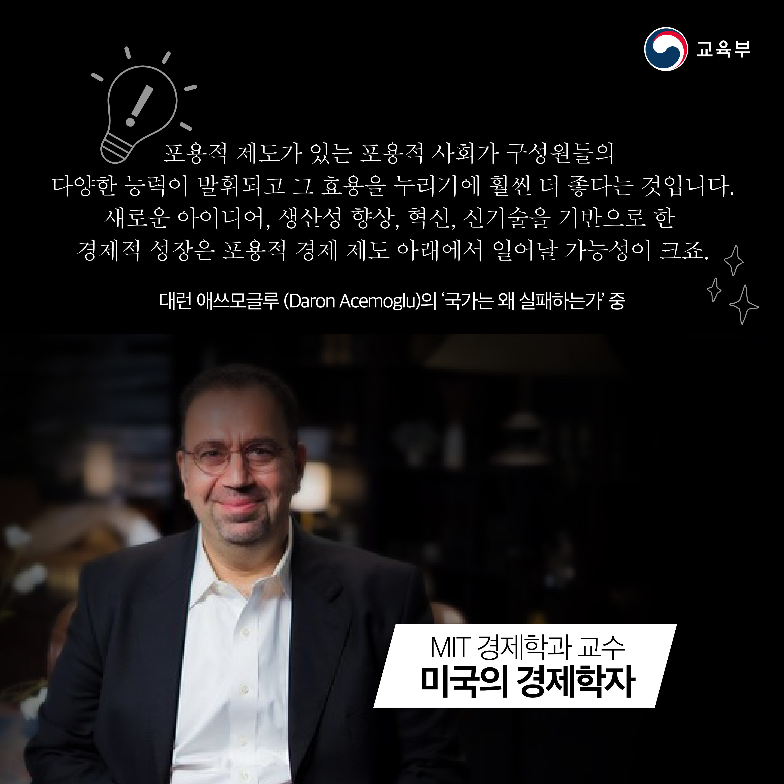 경제적 성장은 포용적 경제 제도 아래에서 일어날 가능성이 크죠.