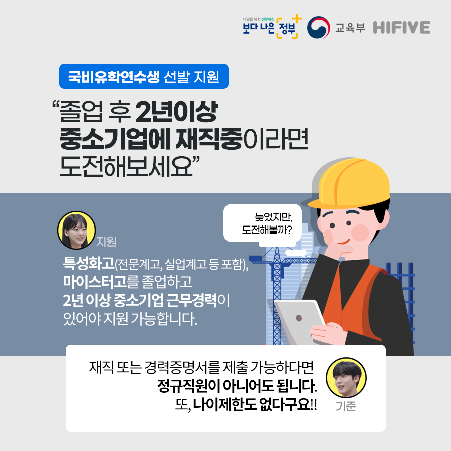 기준-지원이와 함께 알아보는 고졸 기술기능인 국비유학연수생 선발지원 본문