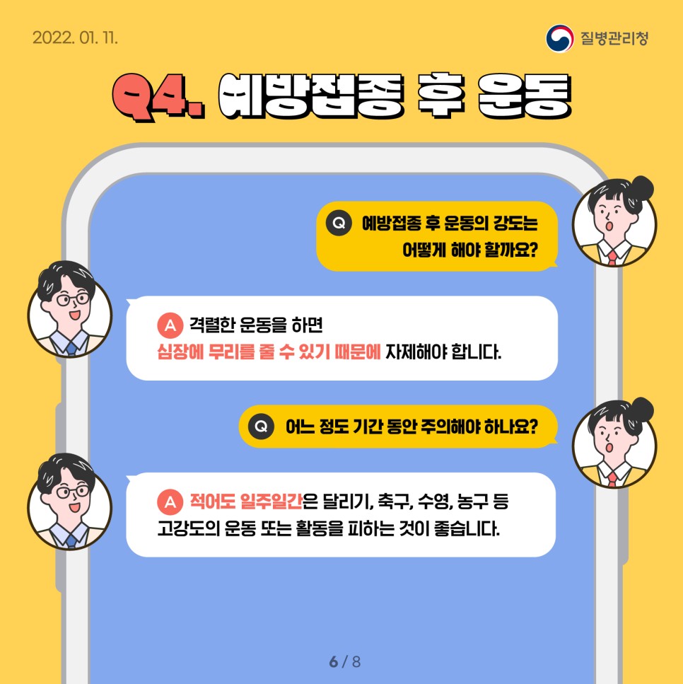Q. 예방접종 후 운동의 강도는 어떻게 해야 할까요?