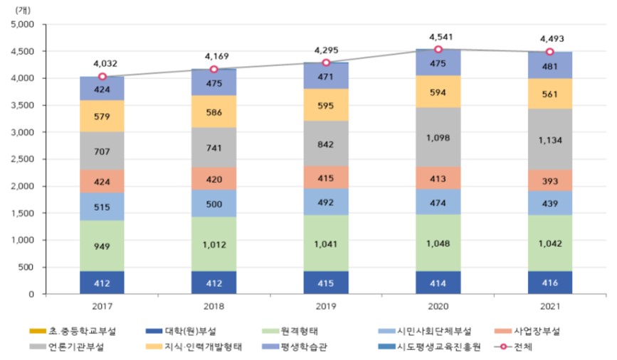 2021년도 국가평생교육통계조사 결과의 주요내용은 다음과 같다.