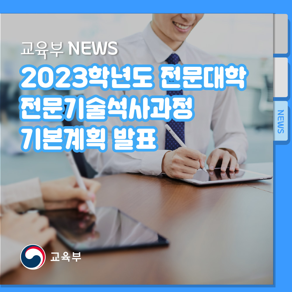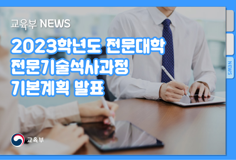 교육부(부총리 겸 교육부장관 유은혜)는 고숙련 전문기술인재를 양성하기 위해 고도화된 직무 중심 교육과정을 운영하는 ‘2023학년도 전문대학 전문기술석사과정 기본계획’을 1월 27일(목)에 발표한다.