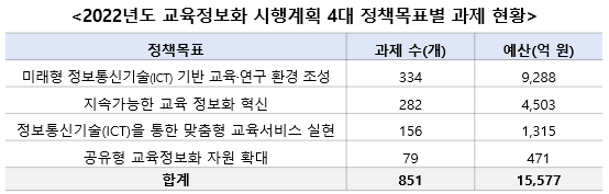 이번 시행계획은 더 많은 학교 현장의 교사와 학생들이 디지털 기반의 수업과 교육정보서비스의 혜택을 누릴 수 있도록, 다양한 형태의 온라인 콘텐츠 확대·제공, 교육 온라인 운영체제(플랫폼) 구축 등의 내용을 담고 있으며, 이는 크게 4대 정책목표로 나누어 수립되었다.