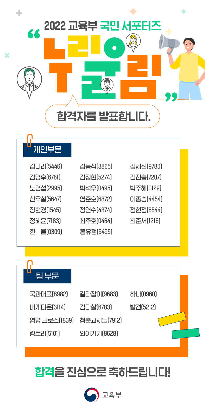 2022 교육부 국민서포터즈 "누리울림" 합격자를
